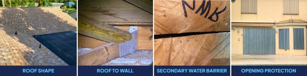 - Roof Shape and Covering: Inspectors assess the type and condition of the roof covering, as well as the shape of the roof. Certain roof types, such as hip roofs, are more wind-resistant than others.