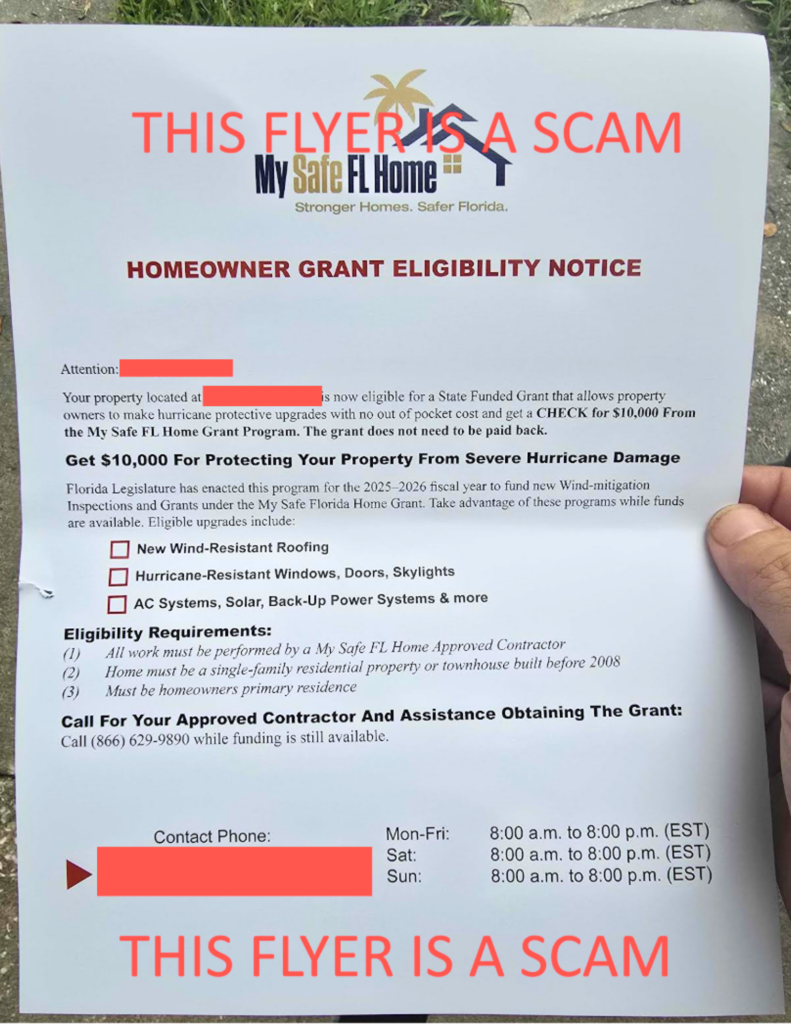 If any other entities outside of these three companies claim they are affiliated with the My Safe Florida Home program, you are likely being scammed!